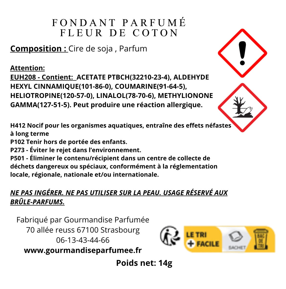 Gourmandise Parfumée fabrique artisanalement ces fondants parfumés à partir de matières premières sélectionnées : cire végétale, huiles parfumées provenant de la ville de Grasse et poudre de mica, vous garantissent un produit de qualité sans émissions toxiques et biodégradables.